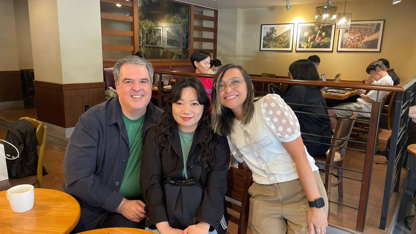 Pude encontrar pessoalmente o Juliano e a Eun bee 선생님