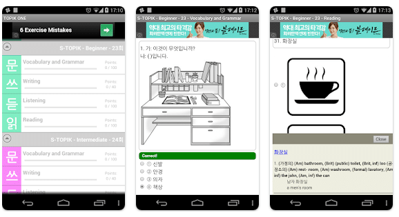 Também há outras versões do app TOPIK One para cada nível de aprendizado, porém esses apps são pagos.