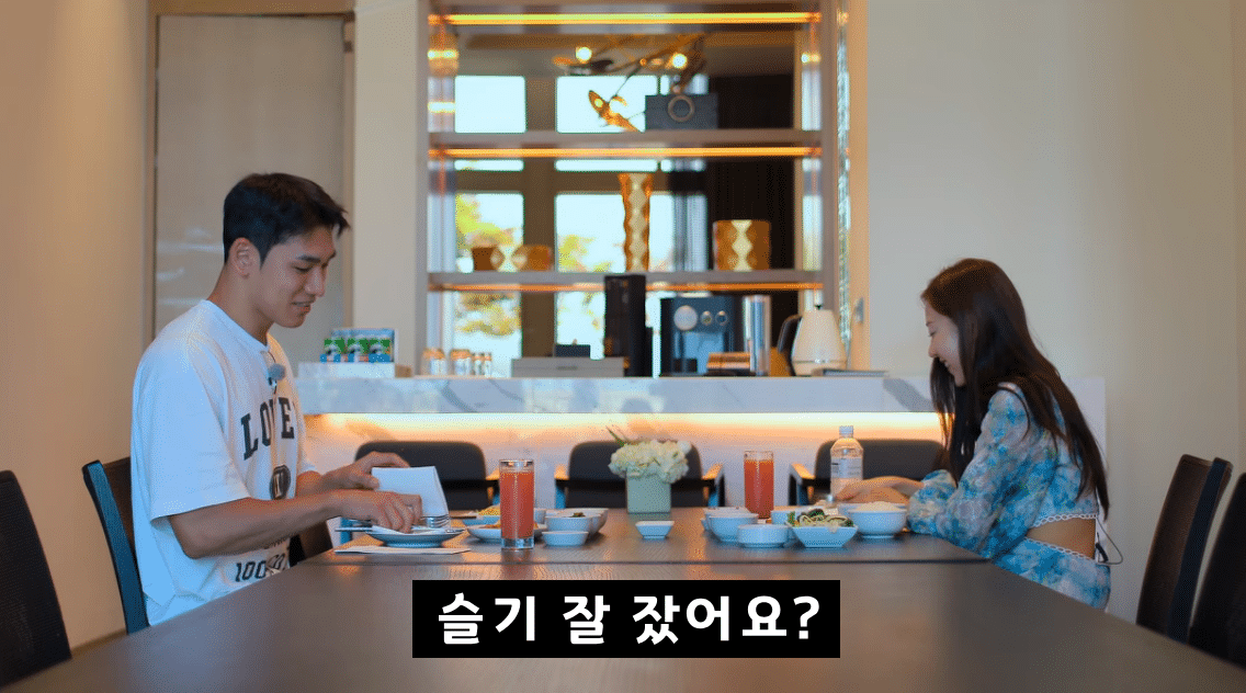 Imagens (bom dia em coreano): Coreano Online original content; Single’s Inferno Season 2 (Netflix)