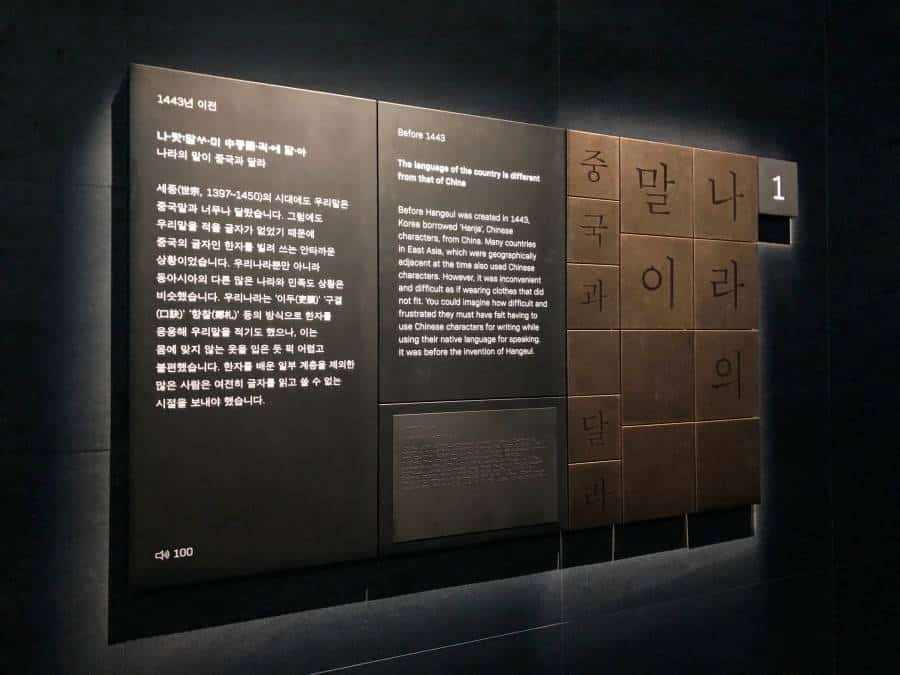 O Museu do Hangul, localizado em Yongsan – Seul. Construído em 2014 e ocupando quase 12 mil metros quadrados, o Museu do Hangul abriga uma exposição fixa, contando a história sobre a criação do alfabeto e o seu desenvolvimento pela história. A exposição é super interativa, cheia de vídeos, atividades e galerias. Não fala coreano? Não tem problema, o museu é completamente traduzido para o chinês, japonês e inglês.