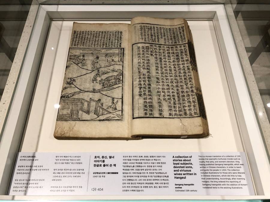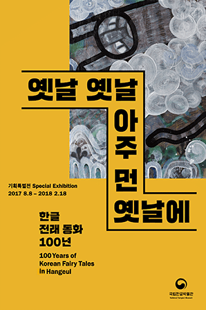 A exposição cobre contos de fadas escritos diretamente em Hangul.
