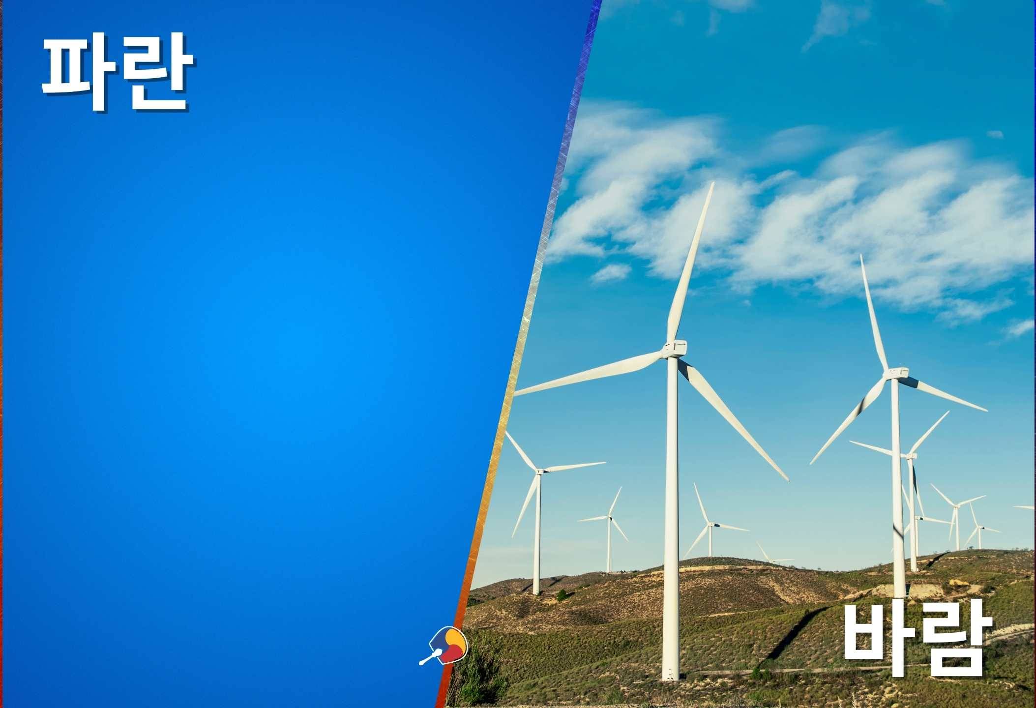 그림의 바람은 파란색이에요 = O vento no desenho é azul.