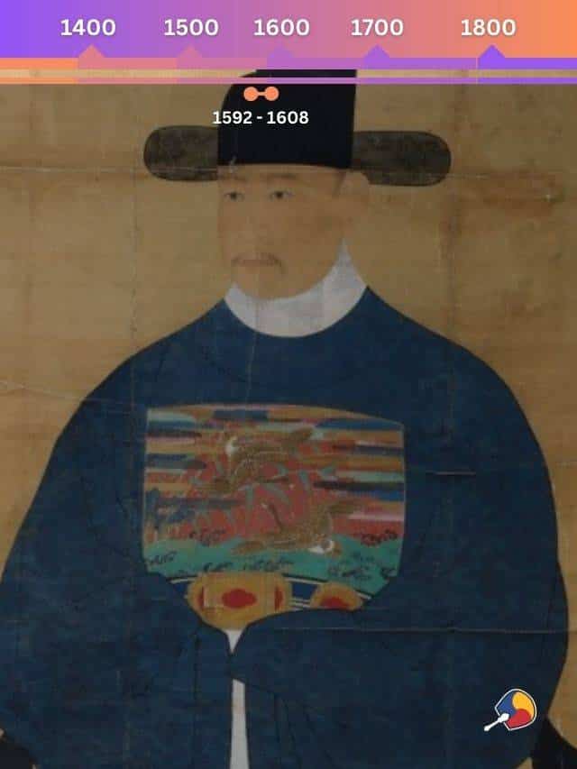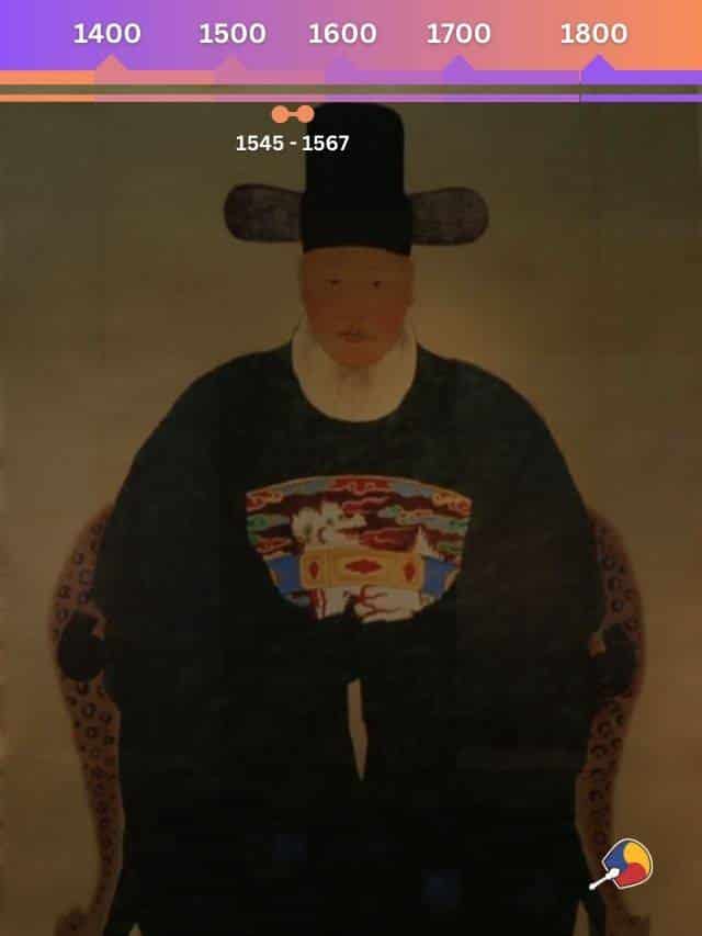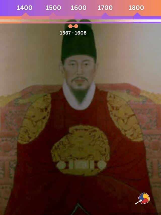 O meio-sobrinho do rei Myeongjong, Yi Yeon 이연 conquistou o trono, tornando-se o rei Seonjo. Ele ganhou destaque por encorajar o confucionismo e a melhoria da vida das pessoas comuns no início de seu reinado, mas também ficou conhecido pelas divisões políticas e por uma fraca liderança quando houve as invasões japonesas na Coreia, resultando na Guerra dos Seis Anos.