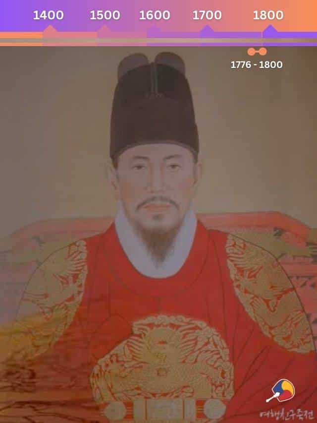Um dos mais notáveis reis da dinastia por suas muitas realizações. Jeongjo, nascido Yi San 이산, implementou várias reformas políticas e econômicas que ajudaram a fortalecer o país e a promover a prosperidade. Construiu um novo palácio, chamado Hwaseong, na cidade de Suwon, que se tornou um patrimônio mundial da UNESCO. Também apoiou as artes e a cultura, criando um grande mercado de livros em Seul e promovendo a escrita de romances e poesia. Foi um rei dedicado à justiça, havendo criado um tribunal especial para lidar com casos de corrupção e abuso de poder. No entanto, ele enfrentou muitos desafios em seu reinado, incluindo a oposição de poderosos clãs nobres e uma crescente ameaça das potências estrangeiras.