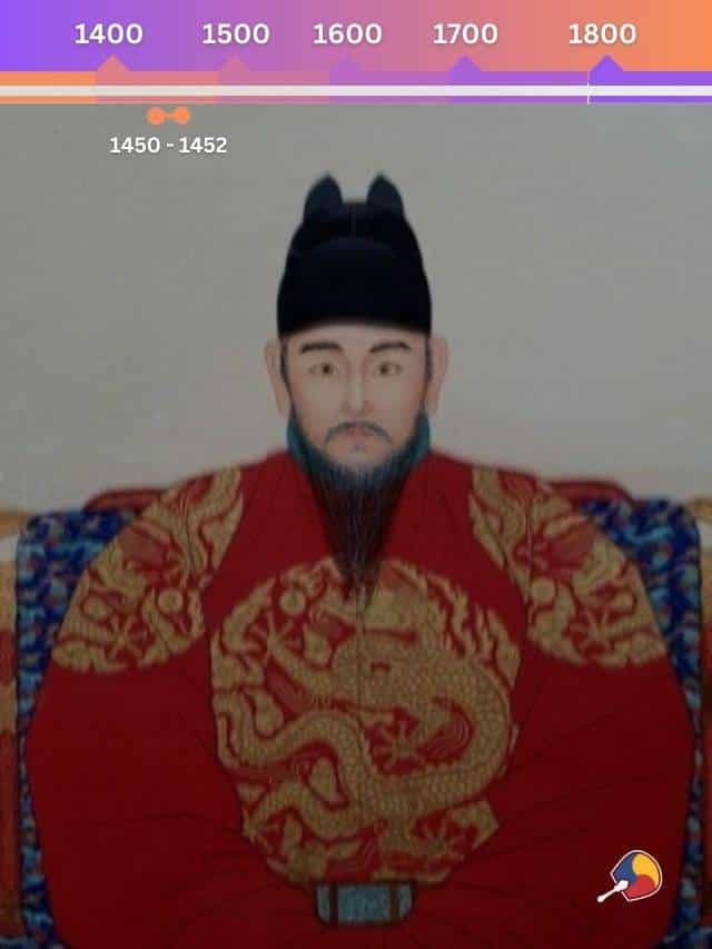 O filho mais velho do Grande Rei Sejong, Yi Hyang 이향 antes mesmo de subir ao trono em 1450, já ajudava o seu pai como regente. Apesar do seu curto reinado, o rei Munjong é lembrado por sua dedicação à promoção da educação e da cultura na Coreia. Durante seu breve reinado, Munjong estabeleceu uma escola para o estudo das obras confucionistas, que se tornaria a prestigiada Universidade Sungkyunkwan. Ele também foi um dos que contribuíram para a criação do Hangul.