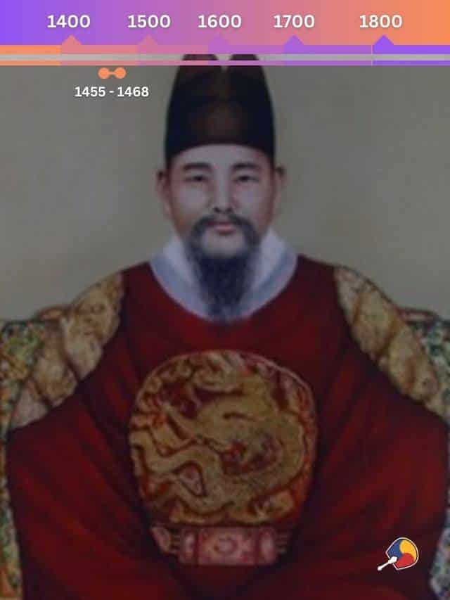 Nascido Yi Yu 이유, o Rei Sejo foi o segundo filho de Rei Sejong. Apenas subiu ao poder depois de liderar um golpe de Estado contra o seu próprio sobrinho, Rei Danjon, em 1455. Sejo tinha grande habilidade em artes marciais, equitação, arco e flecha, além de ser um brilhante comandante militar. Em seu governo, reorganizou a burocracia governamental e estabeleceu um novo sistema de impostos, fortalecendo a monarquia.