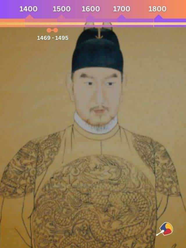 Quando o Rei Yejong morreu, nenhum dos seus filhos o sucedeu ao trono. Porém foi seu sobrinho, Yi Hyeol 이혈, que conquistou o poder como Rei Seongjong aos 12 anos. Um artista talentoso e intelectual, durante o seu reinado houve prosperidade e crescimento da economia no país.